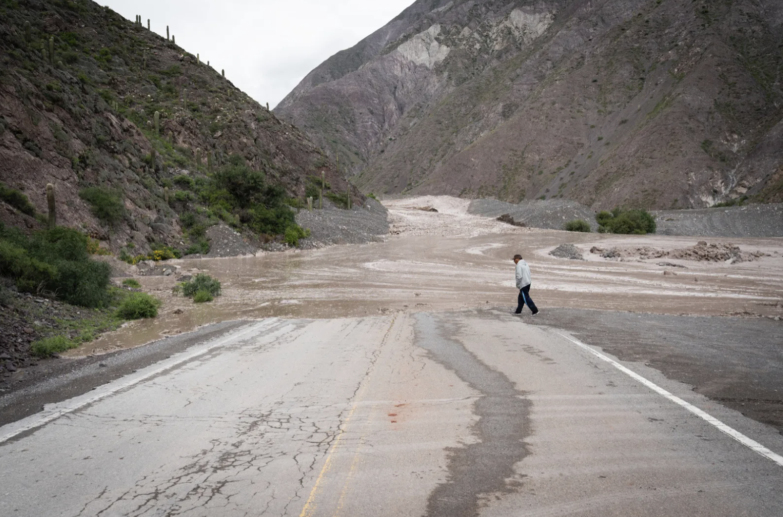 Vacazur, quien además comanda la firma GVH Logística Minera, llama a Vialidad Nacional. Mientras los adultos evalúan los pasos a seguir, Joel, de 11 años, observador del río de barro que corre sobre el asfalto, “nos hace una entrevista: “¿Por qué quieren pasar al otro lado? , pregunta con instinto de periodista.